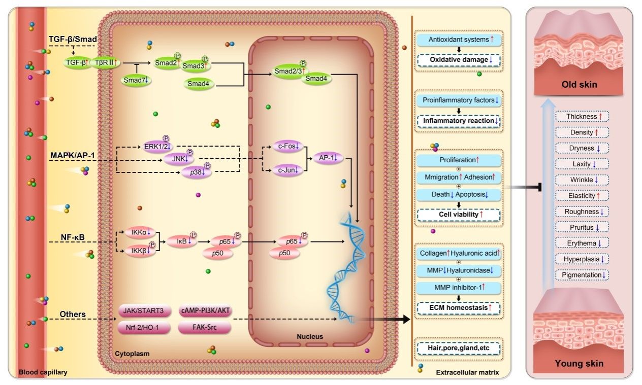 图2 食源性胶原蛋白肽的延缓皮肤衰老作用及潜在分子机制