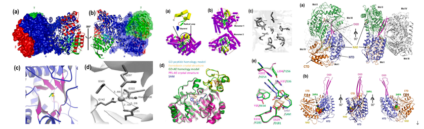 Fig. 1. 3D structure and catalytic mechanism of B12-dGD, B12-iGD and its activating enzyme (GD-AE), and ALDH (abKGSADH)
