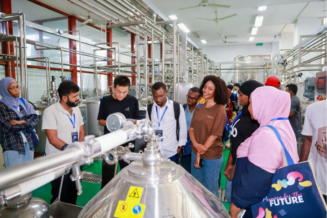在啤酒酿造工艺中试实验室,留学生们在导师的引导下,了解了啤酒酿造的关键工艺流程,包括麦芽糖化、发酵、过滤、熟化等环节。通过现场的设备展示与数据监控系统演示,大家直观感受到中国高校在传统食品加工领域引入智能化、数字化技术的创新成果。一位来自塞尔维亚的留学生表示:“这与我在家乡见到的传统酿造方式完全不同,中国的技术让酿造过程更加精准、高效。”